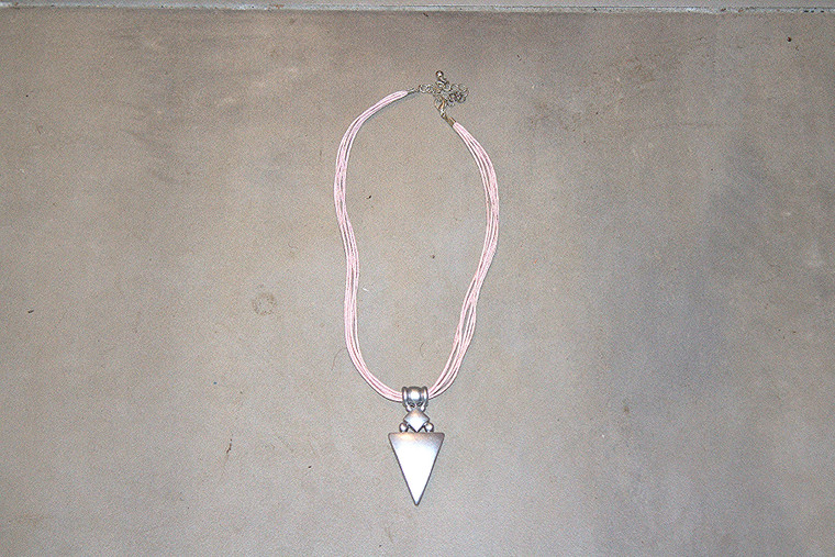 Vintage Flip Triangle Silver Metal/Pink Thread Necklace