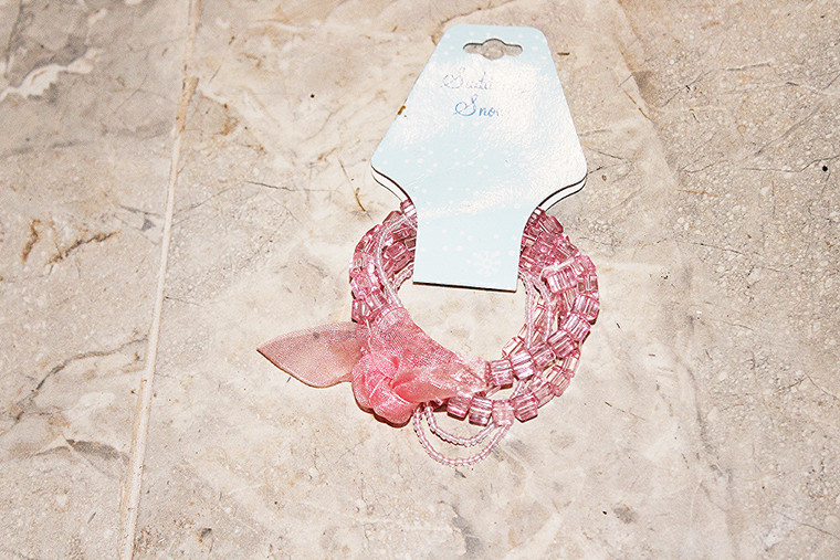 Vintage Suddenly Snow 5-Stretch Pink Beads Ribbon Bracelet